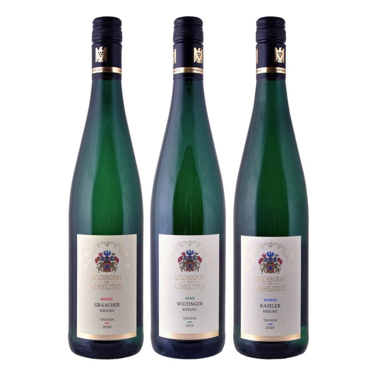 Vína kategorie ortswein (vína z katastru jedné obce) pravděpodobně představují nejlepší poměr kvality a ceny. Jsou sice trochu dražší než základní kategorie moselských vín, ale výrazně se přibližují těm nejlepším Grosses Gewächs (GG). Vinařství Reichsgraf von Kesselstatt vlastní vinice ve všech 3 údolích oblasti a jako jedno z mála nabízí takovouto sadu vín.